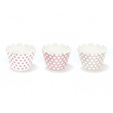 Cupcake wrappers with stars - PartyDeco - peach and gold, 6 pcs.