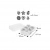 Unique cutters for the preparation of original shortbread cookies with jam or cream. The cutters are made of high-quality durable plastic. Set in a box for easy storage. Dishwasher safe. Use: The bottom of the cookie should be cut with a white cutter, and the top part with both cutters at the same time.