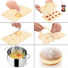 Idealna do łatwego przygotowania nadziewanych domowych pączków. Na rozwałkowanym cieście o grubości 3 mm rozmieścić czekoladowe, marmoladowe czy budyńowe nadzienie. Następnie przykryć drugim płatem ciasta i za pomocą formy wykroić pączki, usmażyć na oleju. Wykonana z wysokiej jakości trwałego plastiku. Można myć w zmywarce.
