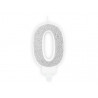 Świeczka urodzinowa cyferka 0 - PartyDeco - brokatowa, srebrna