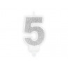 Świeczka urodzinowa cyferka 5 - PartyDeco - brokatowa, srebrna
