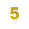 Świeczka urodzinowa cyferka 5 - PartyDeco - brokatowa, złota
