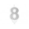 Świeczka urodzinowa cyferka 8 - PartyDeco - brokatowa, srebrna