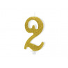 Świeczka urodzinowa cyferka 2 - PartyDeco - brokatowa, złota
