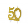 Świeczka urodzinowa liczba 50 - PartyDeco - brokatowa, złota