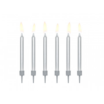 Świeczki urodzinowe - PME - długie, srebrne, 16 szt.