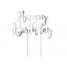 Topper na tort Happy Birthday - PartyDeco - srebrny, 22,5 cm