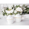 Toppery do muffinek Chmurki i Skrzydła - PartyDeco - biało-złote, 12,5 cm, 6 szt.