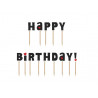 Topper Happy Birthday! - PartyDeco - czarny, 9,2 cm