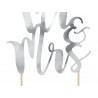 Topper na tort Mr&Mrs - PartyDeco - srebrny, 25,5 cm