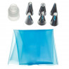 Zestaw końcówek do dekoracji z rękawem silikonowym i adapterem. Końcówki są uniwersalne, pasują do różnego rodzaju rękawów cukierniczych. Idealne do dekoracji ciast, tortów, różnego rodzaju wypieków i przystawek. Adapter mocno trzyma końcówkę nawet pod dużym ciśnieniem i przy gęstym kremie, dodatkowo pozwala na wymianę końcówki bez konieczności wyciągania kremu z rękawa. Całkowicie bezpieczne dla zdrowia i neutralne dla żywności.