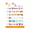 Zestaw akcesoriów do szybkiego i oryginalnego dekorowania babeczek, ciast i tortów. Skomponowany w taki sposób, aby umożliwić wykonanie spektakularnych dekoracji w najpopularniejszych kształtach. Zestaw zawiera uniwersalne tylki pasujące do różnego rodzaju woreczków cukierniczych, dedykowane adaptery i pinezkę do tworzenia kwiatków. Adapter mocno trzyma końcówkę nawet przy gęstym kremie, dodatkowo pozwala na wymianę końcówki bez konieczności wyciągania kremu z rękawa. Dzięki pinezce szybko zrobisz piękne kwiaty, a Twój tort będzie prezentował się jak z cukierni. Zestaw całkowicie bezpieczny dla zdrowia i neutralny dla żywności. Doskonały dla początkujących cukierników, jak i profesjonalistów.